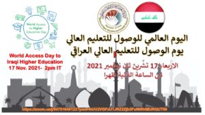 تدعوكم كلية العمارة الجامعة لحضور فعّاليات اليوم العالمي للوصول إلى التعليم العالي الأربعاء الموافق 17/ 11/ 2021 الساعة الثانية ظهرا على المنصة الالكترونية ( zoom) عبر الرابط المدوّن ويهدف البرنامج إلى التعريف بالمنظومة التعليمية في الجامعات العراقية الحكومية والأهلية وسلسلة النجاحات المتعاقبة ومواجهة الصعوبات وتذليل العقبات فضلا عن التحول المشهود